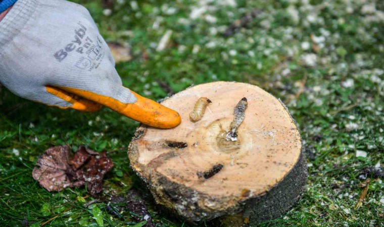 Kesilen ağaçların kökleri de ilaçlanıyor