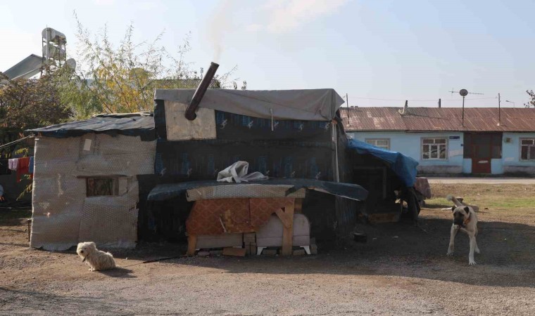 Elazığ’ın merkez Karşıyaka Mahallesi’nde yaşayan 7 çocuk annesi Songül Erdemci’nin (29) evinde yaklaşık 3 ay önce yangın çıktı. Evlerinin bir kısmı yangında zarar gören Erdemci, aynı zamdan depremde hasar alan evine girmeye korktu. Bunun üzerine anne Erdemci, evinin karşısında bulunan tarlaya komşularının da yardımı ile ağır hasarlı binalardan çıkan odunlarla derme çatma bir baraka kurdu. Bir çocuğu Sevgi Evlerinde olan Erdemci, 2’si kumasından 6 çocuğu ile barakada yaşam savaşı veriyor. Eşinin ara sıra gelip sadece çocukları gördüğünü dile getiren Erdemci, geceleri barakanın buzdolabına döndüğünü, en temel ihtiyaçlarının barınma olduğunu vurgulayarak çocuklarının da uzun süredir okula gitmediğini söyledi.