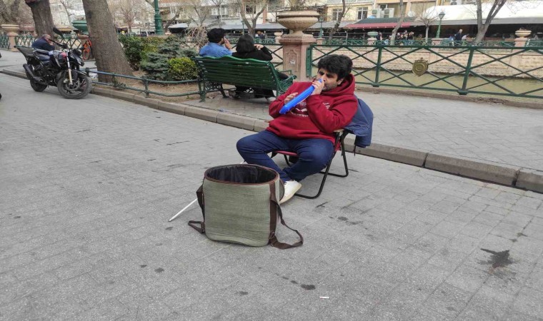 Eskişehir’de birkaç yıldır sokak sanatçılığıyla geçimini sağlayan ve yakın bir tarihte eşini kaybeden görme engelli Mehdi Karanli, yaşadığı zorluklara rağmen kötü hava şartlarında bile sanatını icra etmekten vazgeçmiyor.