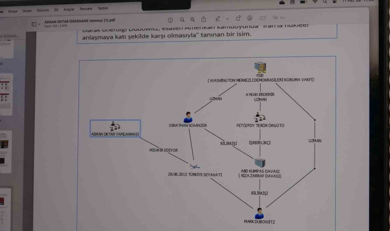 Adnan Oktar suç örgütünün FETÖ ile ilişkisinin çok önemli olduğunu da kaydeden Sezer, “Örgüt, FETÖ ile dirsek temasını 40 yıldır hiçbir zaman bırakmıyor. 2013 yılında 17-25 yargı kumpasından hemen önce Jonathan Schanzer, kimdir bu. Amerika’da görülen Halkbank davasının bilirkişisidir. Adnan Oktar ile görüşmek üzere Türkiye’ye geliyor. Yanında kim var. Mark Dubowitz var. O kim, O da Amerika’da Türkiye aleyhine yayın yapmadıkları, propaganda yapmadıkları gün ve saat olmayan FDD isimli FETÖ’cülerin yoğunlukla içerisinde bulunduğu bir düşünce kuruluşunun üyesi. Bu iki isim 2013 yılında Türkiye’ye geliyorlar, 17-25 yargı kumpasından önce ve kimle görüşüyorlar. Adnan Oktar’la görüşüyorlar. Bunların Türkiye’de kalışlarını, otel masraflarını, Türkiye içindeki gidiş, gelişlerini, seyahatlerini kim organize ve kim finanse ediyor. Adnan Oktar finanse ediyor. Dolayısıyla örgütün FETÖ ile ilişkisi, iltisakı çok açık ve net. FETÖ Amerika tandanslı bir örgüttür. Adnan Oktar’da İsrail tandanslı bir örgüttür” diye konuştu.