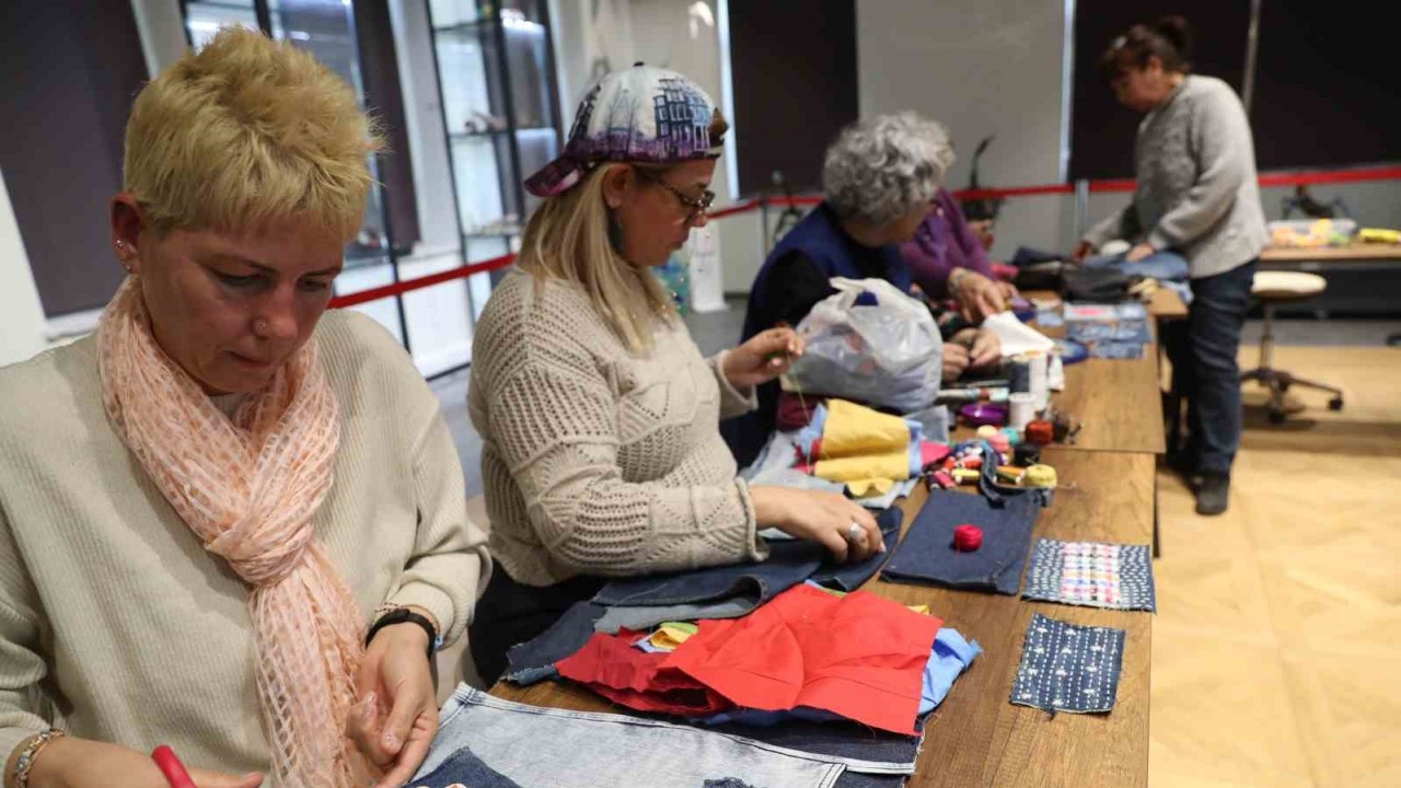 Antalya Büyükşehir Belediyesi Çevre Eğitim ve İnovasyon Merkezinde gerçekleştirilen atölye çalışmalarıyla eski kot parçaları geri dönüştürülüyor. Atölye çalışmasında kadınlar, Japon dikiş tekniği şaşiko yöntemiyle kot atıklarını kullanarak yeni kıyafet tasarlıyor.