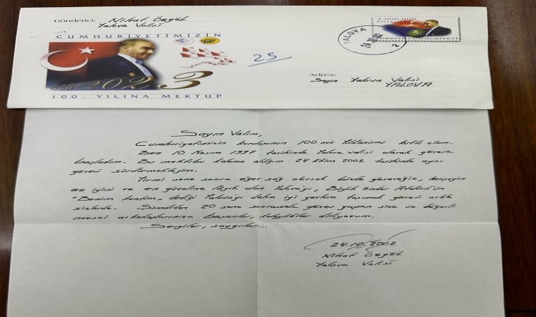 "Sayın Valim, Cumhuriyetimizin kuruluşunun 100’üncü yıl dönümü kutlu olsun. Ben 10 Kasım 1997 tarihinde Yalova Valisi olarak göreve başladım. Bu mektubu kaleme aldığım 24 Ekim 2002 tarihinde aynı görevi sürdürmekteyim. Yirmi sene sonra eğer sağ olursak biz de göreceğiz. Her şeyin en iyisi ve en güzeline layık olan Yalova’yı, Büyük Önder Atatürk’ün, ‘Benim kentim’ dediği Yalova’yı daha iyi yerlere taşımak görevi artık sizlerde. Şimdiden 20 sene sonrasında görev yapan size ve değerli mesai arkadaşlarımıza başarılar, kolaylıklar diliyorum. Sevgiler, saygılar."