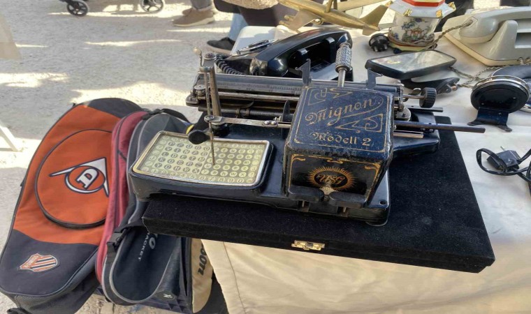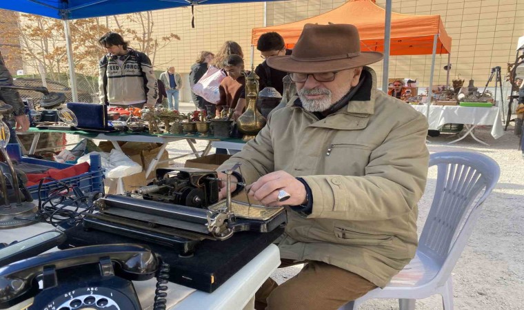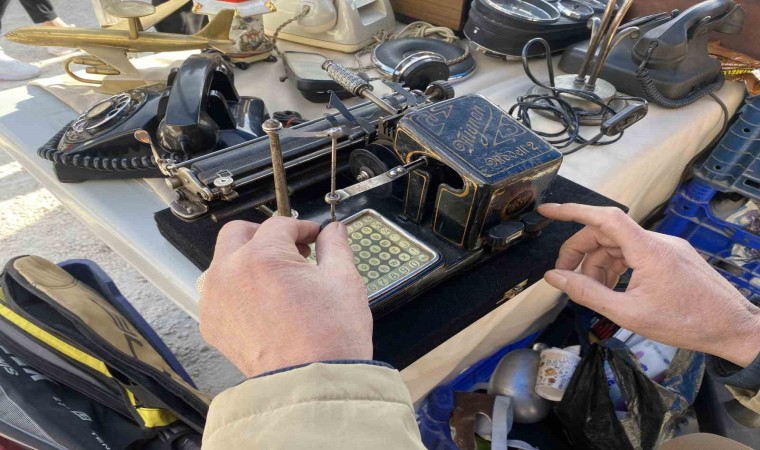 Eskişehir’de 50 yıldır antikacılık yapan Ahmet Yaman, 1850 yapımı Alman daktilosunun elindeki en değerli ürün olduğunu belirtti.