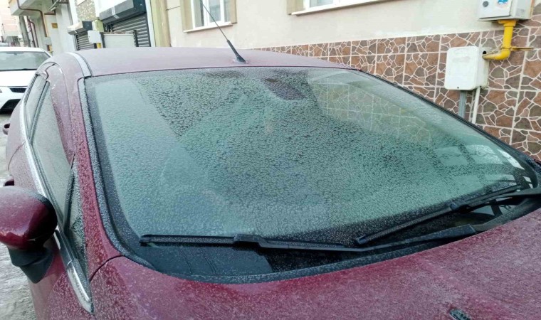 Hava sıcaklığının eksi 7,7 dereceyle düştüğü Eskişehir’de araçların camları buzlanırken, çatı kenarlarında buz salkımları oluştu.