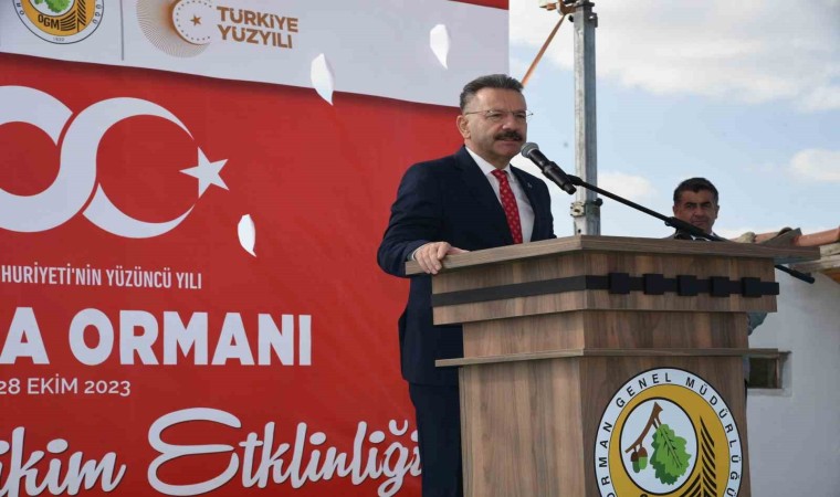 İlk konuşmayı Eskişehir Orman Bölge Müdürü İsmail Çetin yaparak kurtuluş savaşının ve peşinden Cumhuriyetin ilanının mazlum milletlere cesaret verdiğine değindi. Çetin konuşmasının devamında; “Bugün burada yaklaşık 3 hektar alanda 5.000 adet fidanı toprakla buluşturarak hem Türkiye Cumhuriyetinin 100. yılını kutlayacağız hem de Türkiye Yüzyılının başlangıcında hep birlikte yeşil vatana güç vereceğiz. Tıpkı ulu bir çınar gibi kökleri tarihte, dalları gelecekte olan, aziz milletimizin gözbebeği, din ve kan kardeşlerimiz ile dünya mazlumlarının güvencesi Cumhuriyetimizin çok daha güçlenerek ilelebet var olacağına olan inancım ile hepinizi saygıyla selamlıyorum”.