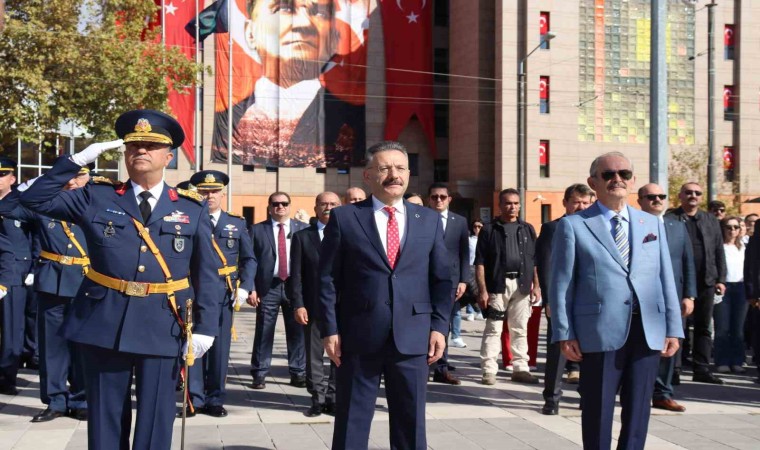 Eskişehir’de 29 Ekim Cumhuriyet Bayramı’nın 100’üncü yılı dolayısıyla Valilik Meydanı’nda çelenk sunma töreni gerçekleştirildi.