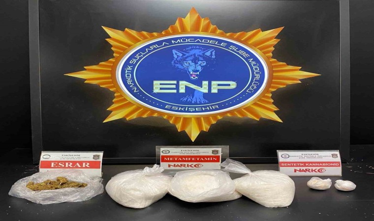 Eskişehir’de polis tarafından 3 kilo 127 gram metamfetamin, 104 gram bonzai hammaddesi ve 38 gram esrar maddesi ele geçirilirken 2 kişi tutuklandı.