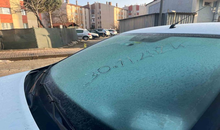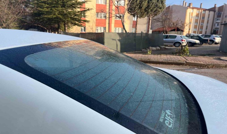 Eskişehir’de sabah erken saatlerde araçların üzerinde oluşan kırağı, araç sahiplerine zorluk çıkardı.
