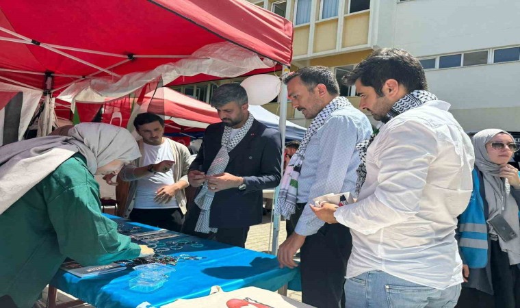 ESOGÜ içinden kurulan RİM Nöbet Çadırı’nda; TÜGVA gençliği, gelirinin tamamını Filistin’e bağışlamak amacıyla hayır pazarı düzenledi. TÜGVA Eskişehir İl Temsilcisi Ramazan Anıl, hayır pazarı alanında yaptığı kısa bir açıklamada, ‘’Yaklaşık 1 aydır çadırda nöbet tutarak Filistin ve Filistin’de devam eden zulümlere farkındalık ve hassasiyet kazandırmayı amaçladık. TÜGVA gençliği, bugün kazancının tamamını Filistin’e bağışlayarak yine bir farkındalık oluşturdu. Teşkilatımızın ve hayırseverlerimizin kendi el emekleri ile hazırladıkları bu ürünleri Filistin halkının kendi öz emekleri olarak görüyorum. Onların mallarını onlar adına satıp, inşallah kazançlarını da onlara tekrar ulaştıracağız. Bizler daha adil bir dünya mümkün diyoruz. Herkesin sustuğunu görsek dahi, zulüm ve vahşetin olduğu yerde susmayacak ve asla sessiz kalmayacağız’’ dedi.