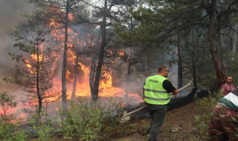 Eskişehir’in Seyitgazi ilçesine bağlı Kümbet ve Oynaş Mahallesi arasında çıkan orman yangınına havadan ve karadan müdahale devam ediyor. Yaklaşık 200 personelin yanı sıra yangına çevre köylerde oturanlar da destek veriyor. Kendi imkanlarıyla getirdikleri küçük su tankeriyle yangına müdahale eden köylüler, alevlerin yayılmasını engellemeye çalışıyor. Suyun yetmediği yerlerde ise köylüler, evlerinden getirdikleri küreklerle ve alevlerin üzerine ayaklarıyla basarak söndürmeye çalışıyor. Köylüler Ahmet Yılmaz, yangını duyar duymaz toplanarak geldiklerini ifade ederek, "Yangını söndürme çalışmalarına destek veriyoruz. Ancak her yere su yetişmiyor. Biz de evden getirdiğimiz küreklerle yangının üzerine toprak atıp söndürmeye çalışıyoruz" dedi. (DHA)
