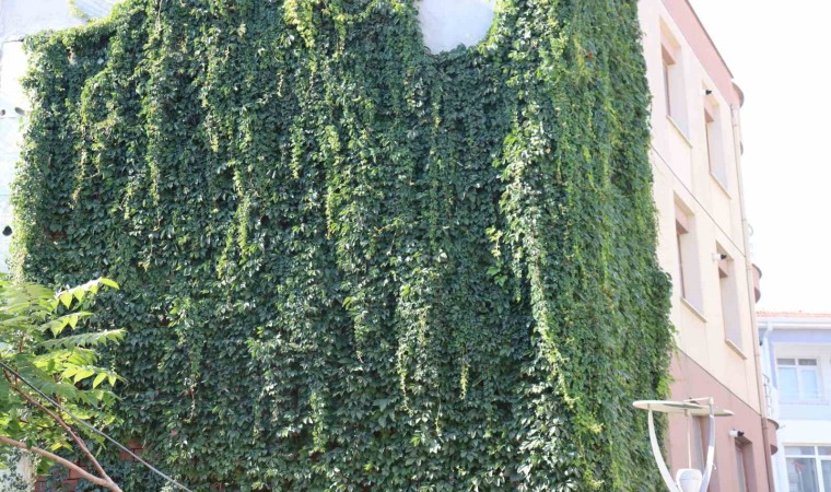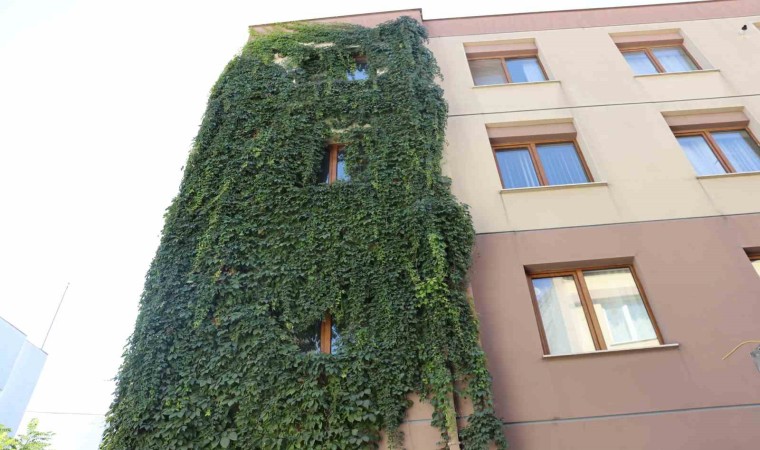 Eskişehir’de bir sokaktaki apartmanın boydan sarmaşık kaplaması gören vatandaşların ilgisini çekti.