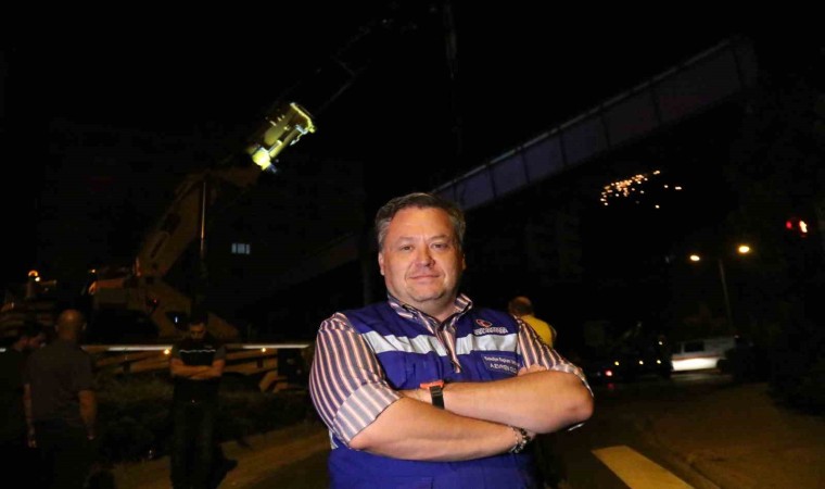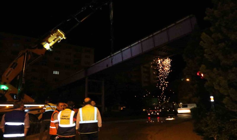 Çalışmaları yerinde inceleyen ve bilgi veren Odunpazarı Belediye Başkan Yardımcısı Evren Olcay, “Uzun yıllardır Eskişehir Adliye Sarayı Kavşağı’mızda bulunan yaya üst geçidimiz artık yıllar vermiş olduğu yorgunluk ve kavşaktaki sinyalizasyon sistemi sebebiyle çok kullanışlı değildi ve tehlike arz eder hale gelmişti. Biz de Başkanımız Kazım Kurt’un talimatlarıyla hafta boyunca gece saat 1’den 5’e kadar Büyükşehir Belediyesi’ndeki yetkililerin de desteğiyle tramvay hattımızı kesiyoruz ve buradaki yaya üst geçidimizi kaldırıyoruz. Yaya üst geçidimiz kalktıktan sonra şuan da aşağıdaki sinyalizasyon ve tarik ışıkları ve tramvayla beraber trafiğin akışı yayalara da ayrıca zaman sağlıyor. Yaya trafiği yer üzerinden devam edecek. Planlanan 4 gün sürmesi ama şuan da takvimin biraz önünde devam ediyoruz. İnşallah başka bir sisteme zarar vermeden 3 gece de tamamlamayı düşünüyoruz. Şuan da Odunpazarı Belediyesi Fen İşleri, Büyükşehir Belediyesi Ulaşım Daire Başkanlığı, Büyükşehir Belediyesi Estram ve farklı yardımcı kuruluşlarla beraber devam ediyoruz. Yaklaşık 50 kişi çalışıyor şuan da, emniyetin de desteği ile yolu kesiyoruz. Bir an evvel herkes kazasız belasız işi bitirmenin derdinde” dedi.