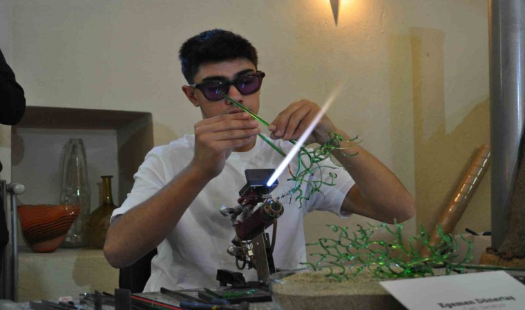 Eskişehir’de düzenlenen Uluslararası Cam Festivali’nin en genç katılımcısı olan 15 yaşındaki Egemen Dönertaş, annesinden görüp başladığı cam sanatını gelecekte mesleği haline getirmek ve kendi atölyesini kurmak istiyor.