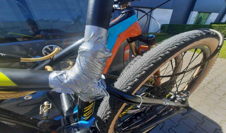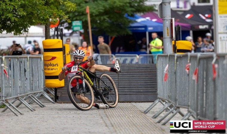 Belçika’da düzenlenen Dağ Bisikleti Dünya Kupası’na Eskişehir’den kız kardeşi ile katılan Gökay Konuk, kaza yapmasına rağmen, kırık bisikletini bantlayarak yarışı orta sıralarda bitirdi.