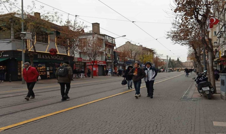 Eskişehirspor taraftarı maç günü şehir merkezinde siyah-kırmızı forma, atkı ve berelerle dolaşarak takımlarına olan bağlılıklarını gösterdi.