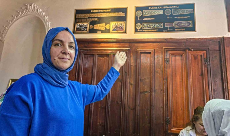 Puşideyi ilmek ilmek işleyen 8 usta öğretici kadın ise tarihe ışık tutmuş şahsiyetlerin türbesinde bulunan örtülere kendilerinin de emeklerinin olmasının gurur verici olduğunu söyledi.