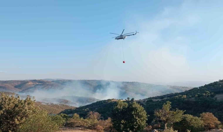 Uşak’ın Eşme ilçesinde iki farklı noktada çıkan yangınlara havadan ve karadan destek devam ediyor.