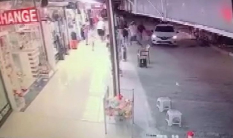 Antalya’nın Kundu turizm bölgesinde, Cezayir asıllı turist giriş yasak olan yere otomobille girdi, esnafın üzerine aracını sürdü. Esnaf sandalyeyle kendini korumaya çalışırken, o anlar güvenlik kamerasına yansıdı.