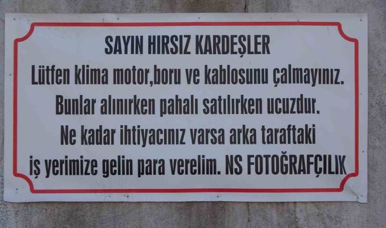Kahramanmaraş’ta bir esnaf, iş yerine giren hırsızlara, "Sayın hırsız kardeşler lütfen klima motoru ve kablosunu çalmayınız" diye not bıraktı.