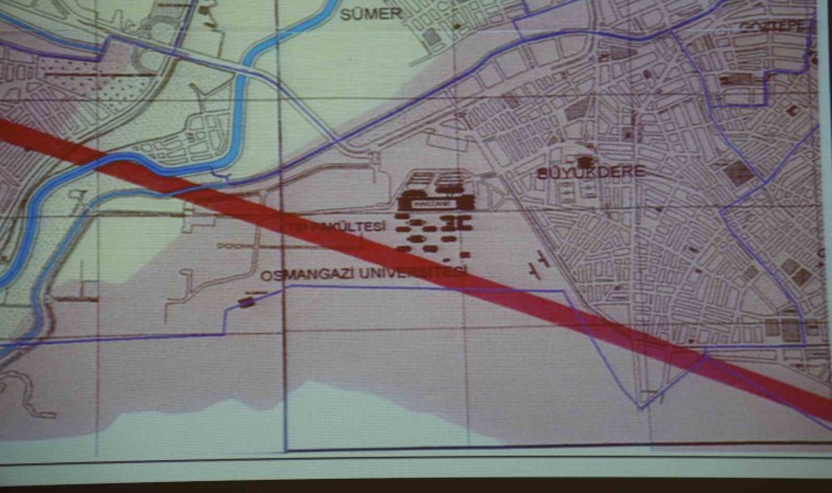 “Eskişehir civarına da baktığımızda İnönü’nün batısında gelen deprem üretme potansiyeli olduğu öne sürülen fay hattı var. Büyük kırılmaların olduğu depremler, yeryüzünde mutlaka iz bırakır. 1999 depreminin oluşturduğu kırılmalar, net şekilde görülebiliyor. Hazırlanan bir raporda, fakülte hastanemizin olduğu yerin arkasında tam bizim kampüsümüz içinden fay hattı geçtiği belirtiliyor. Belirtilen fay var olsa dahi hastanemiz bu fayın dışında kalıyor. Herhangi bir aktif fay araştırılırken biz bazı disiplinlerden yararlanıyoruz. Fakat bu fay hattı belirlenirken, gerekli çalışmalar yapılmamış. Eskişehir’in Karabayır Bağları mevkiinde ve 75. Yıl Mahallesi yakınlarında bulunan fay hatları birleştirilmiş. Bizler de bu fayın varlığını tespit edebilmek için bazı çalışmalar yaptık. Belirlediğimiz yerlerde hendekler açtık. Yüzeyde bir şey tespit edemedik. Jeofizik ölçüm sonuçlara ve gözlemlerle sondaj verileri, Meşelik Kampüs alanı içinde herhangi bir fay olmadığını ortaya koymaktadır.”