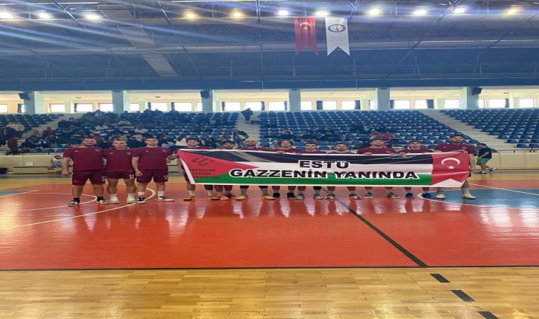Eskişehir Teknik Üniversitesi (ESTÜ) basketbol takımı, Türkiye Üniversite Sporları Federasyonu Üniversiteler Arası Basketbol Bölgesel Ligi müsabakasında Filistin’e destek pankartı açtı