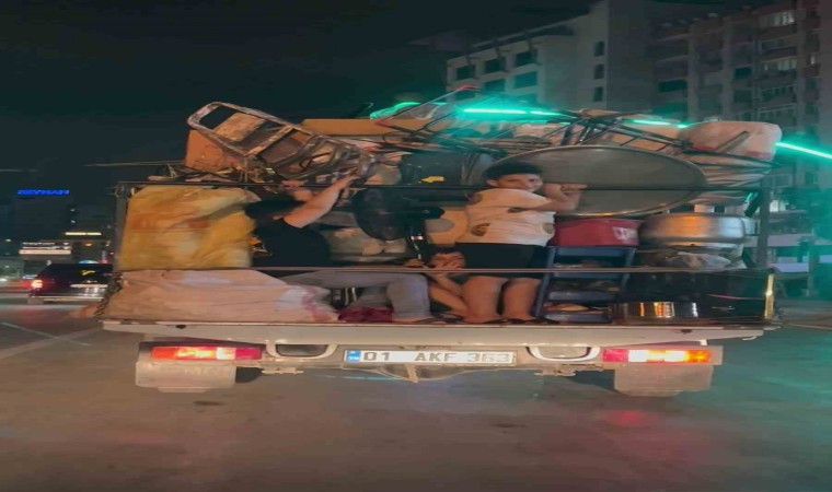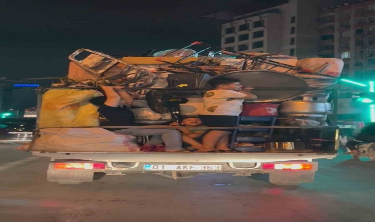 Adana’da eşya yüklü kamyonette 3 çocuğun tehlikeli yolculuğu yürekleri ağza getirdi.