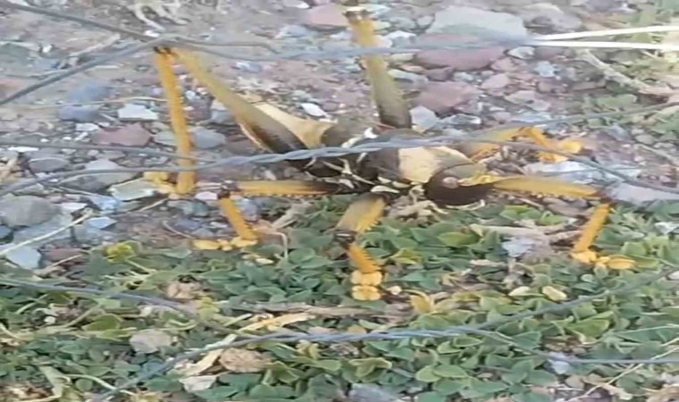 Elazığ’ın Palu ilçesinde arı kovanlarına bakmaya giden Memet Şekerci, kovanlarının bulunduğu alanda dev bir çekirge gördü. Daha öncede etçil çekirge ile karşılaşan Şekerci, yine kayda alarak sohbet etti. Şekerci’nin sohbeti gülümsetti.