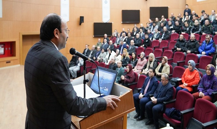Konuşmasının ardından personellere tek tek teşekkür belgelerini takdim eden Rektör Çakmak, tüm personeli sahneye davet ederek hatıra fotoğrafı çektirdi.
