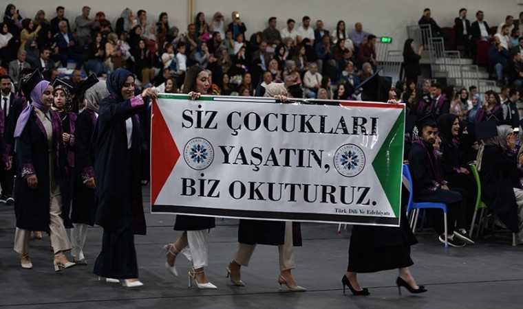Konuşmasında Gazze’de yaşanan olaylara değinen Rektör Çakmak, insanların acımasızca katledildiğini ifade ederek: “On binlerce masum insan çocuk, kadın ve yaşlı demeden tüm dünyanın gözü önünde katlediliyor. Öte yandan yüreği insan sevgisi ile dolu olanlar tepkilerini her şekilde ifade ediyor. Bu noktada biz ne yapabiliriz sorusunun cevabı iyiliği çoğaltmak olmalıdır. Dünyada kötülüğü yayanlara karşı evimizde, işimizde ve beşeri ilişkilerimizde adaleti tesis edecek, evrene iyilik dalgalarını gönderecek ve galip geleceğiz. Yangına su taşıyan karınca misali biz de kendi gücümüz ölçüsünde her daim iyilik için mücadele edeceğiz. İşini en iyi şekilde yapan, tüm canlılara karşı merhametli ve şefkatli insanlar olacağız. Karanlığı, yaydığımız iyilik ışığıyla yok edeceğiz. Hayatın gayesi sadece iyi bir iş sahibi olmak, para kazanmak, kariyer yapmak, servet sahibi olmak değildir. Aynı zamanda değer sahibi olmak, ilkeli olmak ve insanlığa faydalı bireyler olmaktır. Sözlerimi bu duygu ve düşüncelerle tamamlarken sizleri mezuniyetinizden dolayı tekrar tebrik ediyor, bundan sonraki yaşamınızda yolunuzun ve bahtınızın açık olmasını temenni ediyorum” diye konuştu.