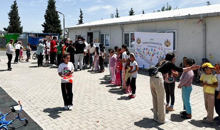 Kahramanmaraş’ın Dulkadiroğlu ilçesinde bulunan Baykar Konteyner Kentinde kalan depremzede çocuklara destek olmak amacıyla bölgeye giden ETÜ Ombudsmanlık Topluluğu ve gönüllü öğrencilerden oluşan kafile çeşitli etkinlikler düzenleyerek çocukların yüzünü güldürdü.