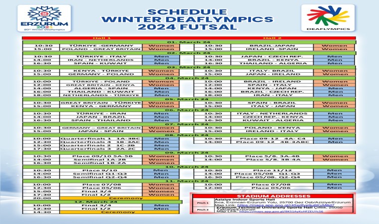 İşitme Engelliler 20. Kış Deaflympics Olimpiyat Oyunları Erzurum Teknik Üniversitesi’nin (ETÜ) paydaşlığında 1-12 Mart 2024 tarihlerinde Erzurum’da başlıyor.