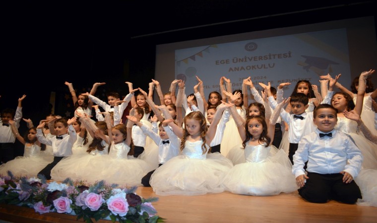 Ege Üniversitesi Anaokulunda eğitim gören 6 yaş grubu öğrencileri, yaşamlarının ilk mezuniyet sevinçlerini yaşadı. Çocukların toplum önünde kendilerini ifade edebilmelerini sağlamak, özgüvenlerini artırmak ve ileride güzel anılar biriktirmek amacıyla gerçekleşen “Yıl Sonu Gösterisi ve Mezuniyet” etkinliğinde mezun öğrenciler, bayrağı alt sınıflarına devretti.