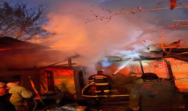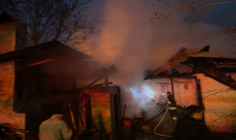 Yangın nedeniyle ev ve müştemilat kullanılamaz hale geldi.