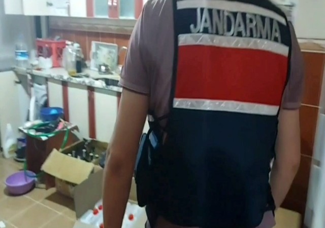 Aksaray’da jandarma ekipleri tarafından düzenlenen operasyonda, oturdukları evi sahte içki imalathanesine çevirerek üretim yapan 5 şüpheliyi gözaltına aldı. Yapılan aramalarda, 114 litre etil alkol ve 575 litre sahte içki ve üretim malzemeleri ele geçirildi.