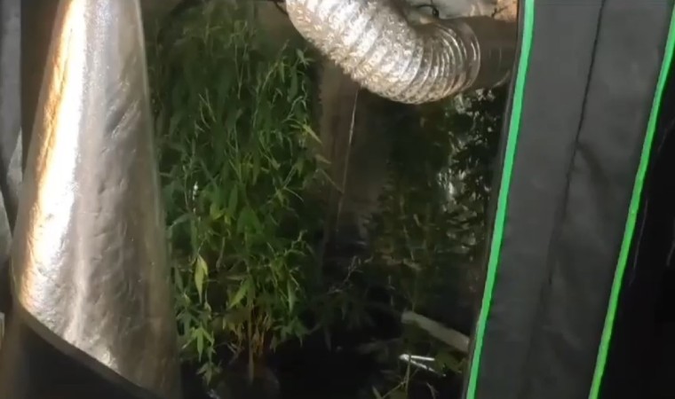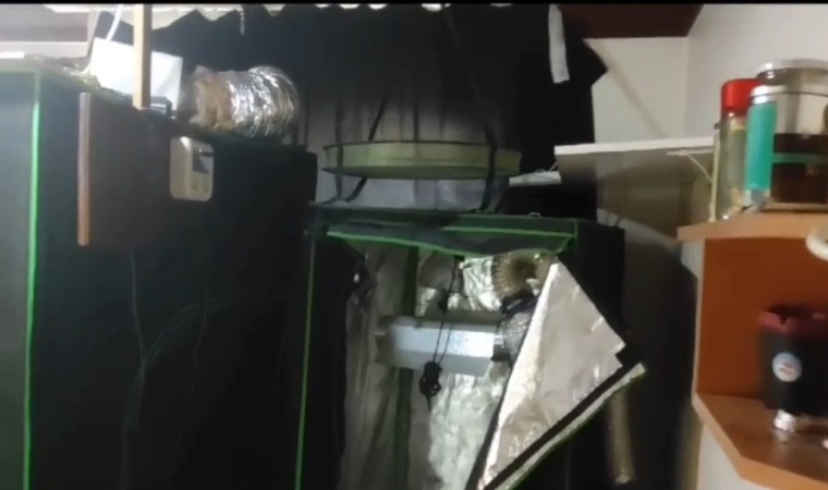 Yapılan aramalarda adeta bir uyuşturucu fabrikasına çevrilen evden 6 kök hint keneviri bitkisi, 30 gram hint keneviri tohumu, 1 adet kenevir öğütücü ve 0.5 gram esrar maddesi, 1 adet çalışır vaziyette hassas terazi, 16 adet 1 litrelik kutular halinde sıvı kimyasal gübre, 9 adet şeffaf kilitli poşet, 18 adet ısıtma maksatlı kullanılan ampül, 3 adet ısı ölçer termostat, 3 adet zaman ayarlı priz, 4 adet 600W güç adaptörü, 4 adet büyük boy havalandırma borusu, yaklaşık 2 metre uzunluğunda rulo haline alüminyum folyo, 2 adet aydınlatma düzeneği, içinde bitki yetiştiriciliği yapılan 2 adet kapalı bez kabin, 4 adet bez saksı ele geçirildi.