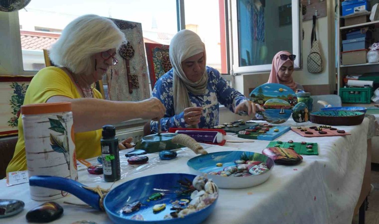 Eski eşyaları hep yeni ürünlere çevirmeyi sevdiğini söyleyen Kursiyerlerden Müfide Sipahi, boyama yapmayı çok sevdiğini ve eski tavalar, taşlar ve kavanozları çöpe atmak yerine süsleyerek yeniden hayata kazandırdığını aktardı.