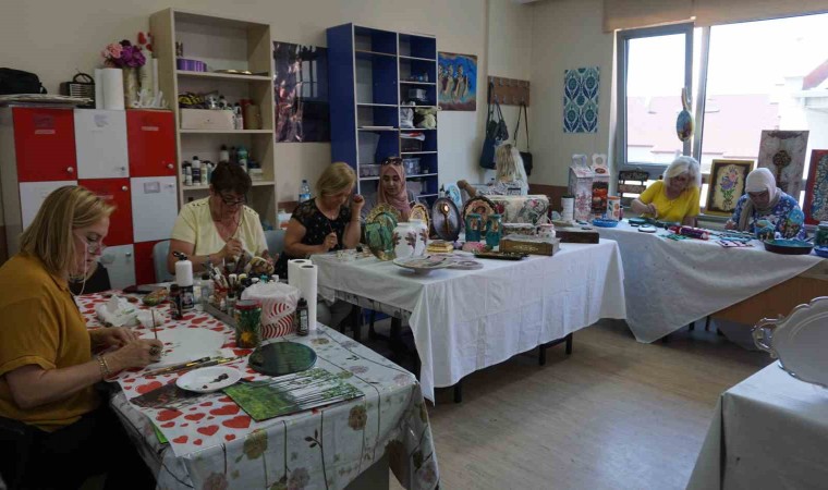 Edirne Halk Eğitim Merkezi’ndeki Dekoratif Ahşap Boyama ve Süsleme Kursu’na katılan ev hanımları, çöpe gidecek ürünleri boyayarak ve desenlendirerek hem geri dönüşüme, hem de bütçesine katkı sağlıyor.
