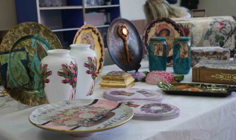 Kursiyerlerin evlerinde eskimiş ve atıl durumda olan ya da desenlerinden sıkıldıkları bir takım çok büyük olmayan küçük mobilya tipi ev objelerini yenilediklerini ifade eden Erkin, sehpalar, fiskoslar, küçük masalar, çekmeceler, tavalar, taşlar gibi birçok ürünü yeniden hayata kazandırdıklarını belirtti.