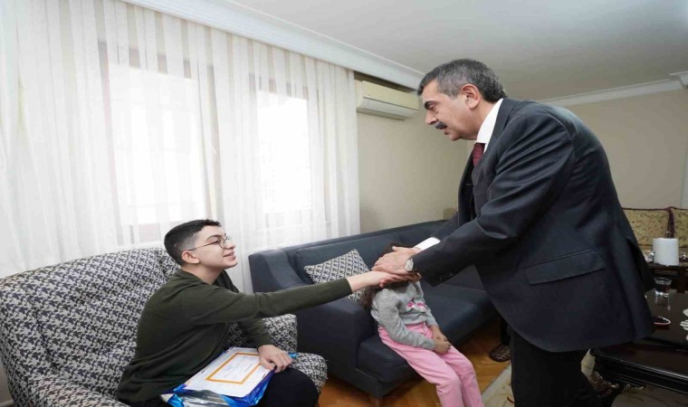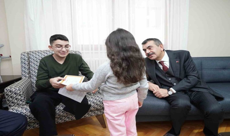 Milli Eğitim Bakanı Yusuf Tekin, sağlık sorunları nedeniyle evde eğitim hizmeti alan depremzede öğrenciyi ziyaret ederek, karnesini verdi.