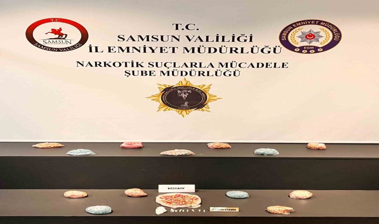 Samsun Cumhuriyet Başsavcılığı Uyuşturucu Suçlar Bürosu Cumhuriyet Savcısınca verilen talimatlar neticesinde Samsun Emniyet Müdürlüğü Narkotik Suçlarla Mücadele Şube Müdürlüğü ekipleri elde edilen istihbari bilgiler doğrultusunda Tekkeköy ilçesi Kirazlık ve İstiklal Mahallelerinde B.Ö.(35), M.D.(36) ve T.Ş.(26) isimli şahısların ikametlerine operasyon düzenledi. Yapılan aramada, ikametin buzdolabına, gardırobuna ve ayakkabı dolabına zulalanmış şekilde poşet poşet 13 bin 701 adet extacy hap, 8 paket satışa hazır vaziyette toplam 10 gram metamfetamin, 11 adet sentetik ecza ele geçirildi. Olayla ilgili B.Ö., M.D. ve T.Ş. yakalanarak gözaltına alındı.