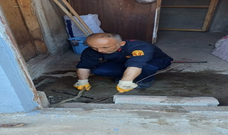 Olay, Yıldızhan Mahallesi Ramazan Sokak’ta ikamet eden Yunus Sak’ın evinde yaşandı. Sıcak havaların etkisiyle doğal yaşam alanlarında su içmek için yerleşim yerine geldiği tahmin edilen yılan, ev sakinlerinin dikkatinde kaçmadı. Eve giren yaklaşık 1,5 metre boyundaki yılanı gören ev sahipleri Alaca Belediyesi İtfaiye ekiplerinden yardım istedi. İtfaiye ekipleri olay mahalline gelerek yılanı yakalayarak ormanlık alanda doğal yaşam alanına bıraktılar.