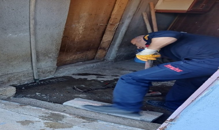 Çorum’un Alaca ilçesinde bir eve giren yılan paniğe neden oldu.
