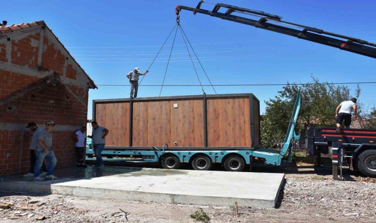 Evin olduğu alana beton atıp altyapı bağlantılarını hazırlayan Süleymanpaşa Belediyesi Fen İşleri Müdürlüğü ekipleri, prefabrik evi alana yerleştirerek yaşlı kadının mağduriyetini giderdi.