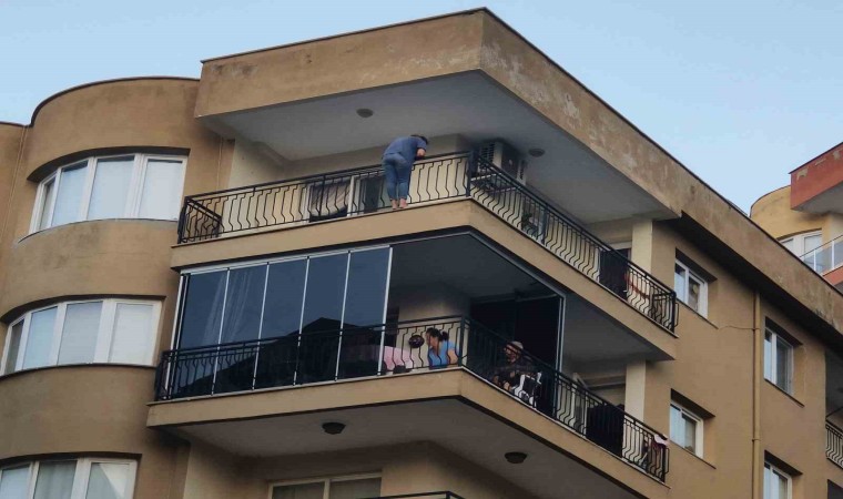Olay, saat 18.00 sıralarında Ege Mahallesi’nde meydana geldi. Edinilen bilgiye göre, Çisemkent Sitesi’nde yaşayan F.Ç. ile kocası Z.Ç. arasında iddiaya göre; oturdukları evin tapusunun kimin üzerine yapılacağı hususunda tartışma çıktı. Bunun üzerine sinir krizi geçiren F.Ç., 6’ncı kattaki evlerinin balkonuna çıkarak atlamak istedi. Demir korkuluklara tutunup, aşağıya sarkan ve bağıran kadını gören komşuları durumu polis ve itfaiyeye bildirdi. İhbar üzerine kısa sürede olay yerine gelen ekipler, F.Ç.’yi balkondan atlamaması için ikna etmeye çalıştı. Bir süre sonra polis ekipleri, F.Ç.’ye evin kendi üzerine olduğuna dair bir yazılı belge gösterdi. Bunun üzerine sakinleşen kadın, korkuluklardan alındıktan sonra ifadesi için Kuşadası İlçe Emniyet Müdürlüğü’ne götürüldü.