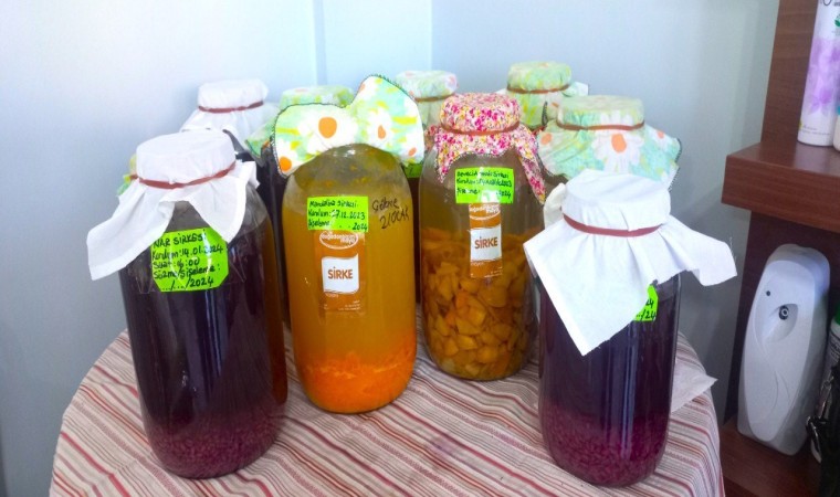 Çorum’un Osmancık ilçesinde yaşayan İsmail Kavak, doğadan topladığı ve organik olarak temin ettiği meyvelerden çeşit çeşit sirke yapıyor.