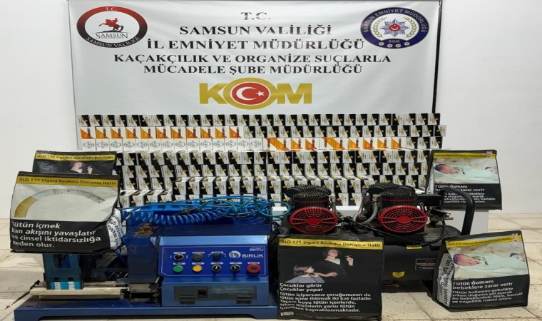 Samsun’da bir kişi evinde makineyle kaçak olarak sigara sarma ve tütün dolumu yaparken yakalandı.