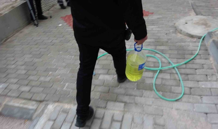Dalgınlığından yararlanarak elindeki benzin bidonunu aldı