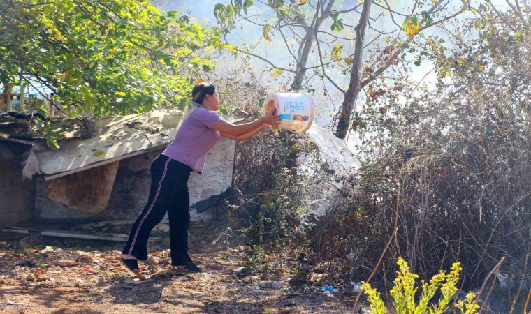 Antalya ikametlere yakın bir alanda çıkan yangında mahalle sakinleri büyük panik yaşadı. Vatandaşlar alevlerin ikametlere sıçramaması için yangına kova ve hortumlarla müdahale ederken, bir evin yanındaki odunluğu alev alan kadın gözyaşları içinde alevleri hortumla söndürmeye çalıştı.