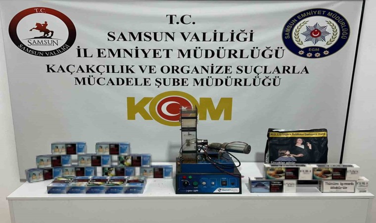 Edinilen bilgiye göre, Samsun Emniyet Müdürlüğü Kaçakçılık ve Organize Suçlarla Mücadele (KOM) Şube Müdürlüğü ekipleri, il genelinde sağlıksız ortamlarda yasadışı makaron sigara üretimi yapan şahıslara yönelik çalışma yaptı. KOM polisi, 2 şahsın İlkadım ve Atakum ilçelerinde apartman içerisindeki iki evde kurmuş oldukları seri üretim yapan elektrikli ve kompresörlü makinalar ile doldurulmuş makaron sigara üreterek tütüncü olarak bilinen işyerlerine toptan sattıkları tespit etti. Tespit edilen adreslerde şahıslar suçüstü yakalandı. Evlerde yapılan aramalarda; 3 bin 200 adet doldurulmuş makaron sigara, 2 bin 600 adet bandrolsüz boş makaron, 2 adet elektrikli sigara sarma makinesi 2 adet kompresör, 1 kilo açık kıyılmış tütün ele geçirildi.