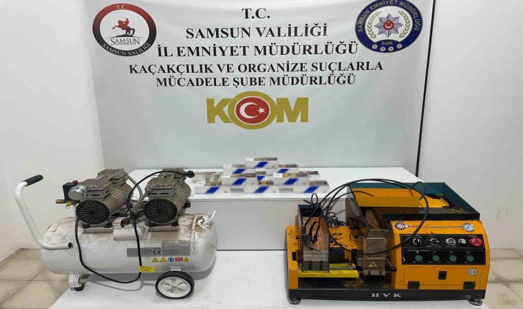 Samsun’da polis tarafından 2 ayrı eve yapılan operasyonda sigara fabrikası gibi kompresörlü sigara dolumu makineleri ve dolu ve boş makaronlar ele geçirildi.